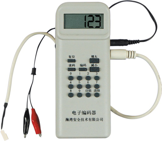 與探測(cè)器、模塊的總線端子相連,操作 ,開機(jī)后按下讀碼鍵,液晶屏上將顯示地址編碼。輸入探測(cè)器或模塊的地址編碼(1-242),按下“編碼”鍵進(jìn)行編碼。若編碼成功,屏幕顯示下一個(gè)地址碼,此時(shí),直接按下“編碼”鍵,可直接編入下一個(gè)地址碼。