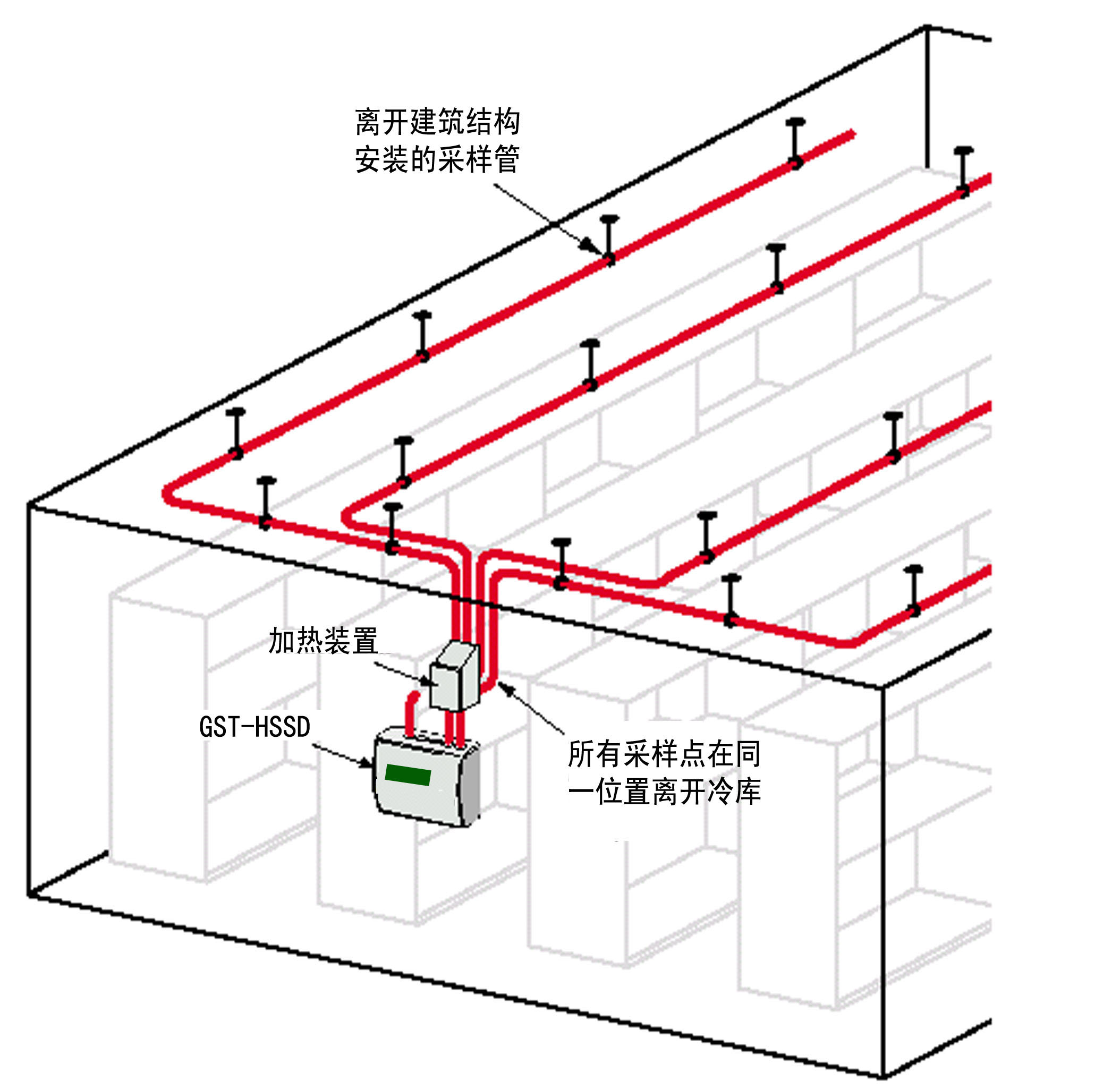 本指南用于幫助設計者針對冷庫這種特殊的環境條件設計-有效和-可靠的煙霧探測系統。我們總是敦促設計者使其設計的空氣采樣式煙霧探測系統達到或超過--消防規范、標準或規則的規定,但在這一應用中,要做到這一點相當困難。當設計不能滿足一般公認的參數指標時,設計者應該與用戶、保險公司或權威機構針對其中的難點進行討論。以下吸氣式感煙火災探測器以GST-HSSD(編輯注:此型號目前已經停產,實際可用其他型號替代)為例。