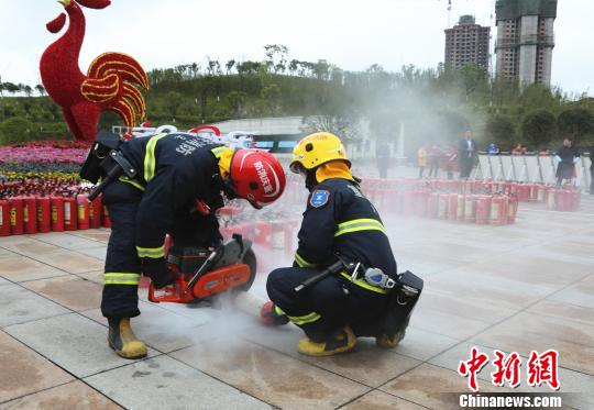 圖為活動現場,消防官兵正在通過切割、砸碎、碾壓等方式對假冒偽劣產品進行銷毀。李川 攝